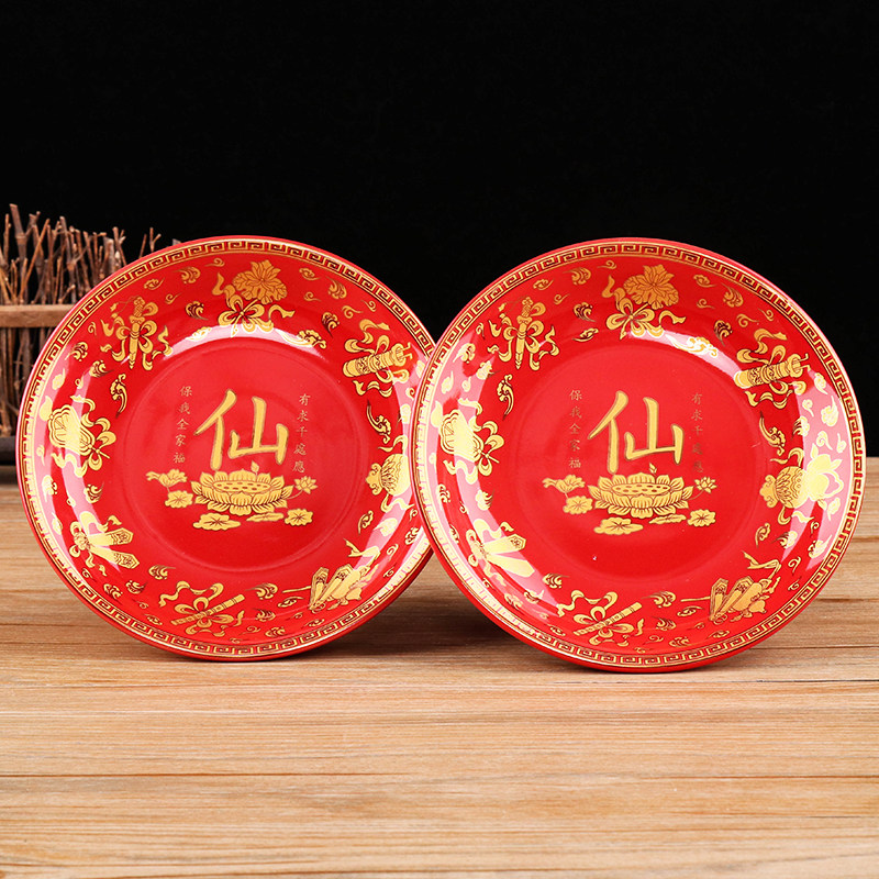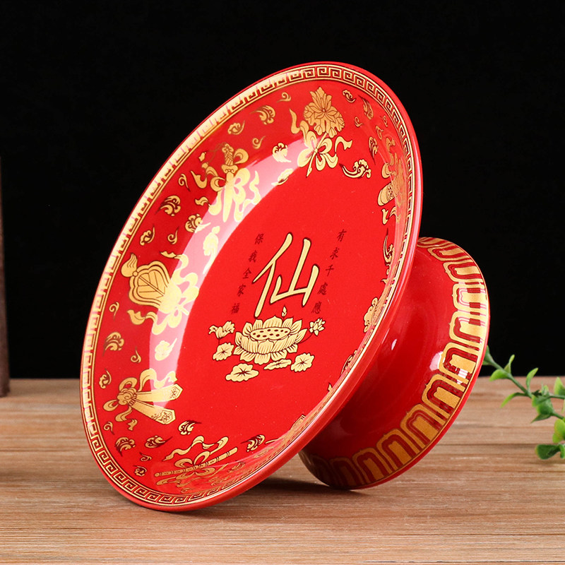 Xianjia red ceramic Taoist family home for Buddha fruit plate for the God of Wealth water cup for plate home high foot fruit plate