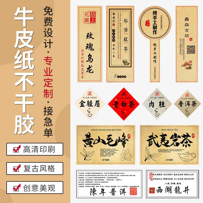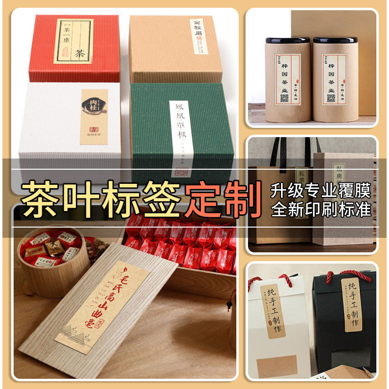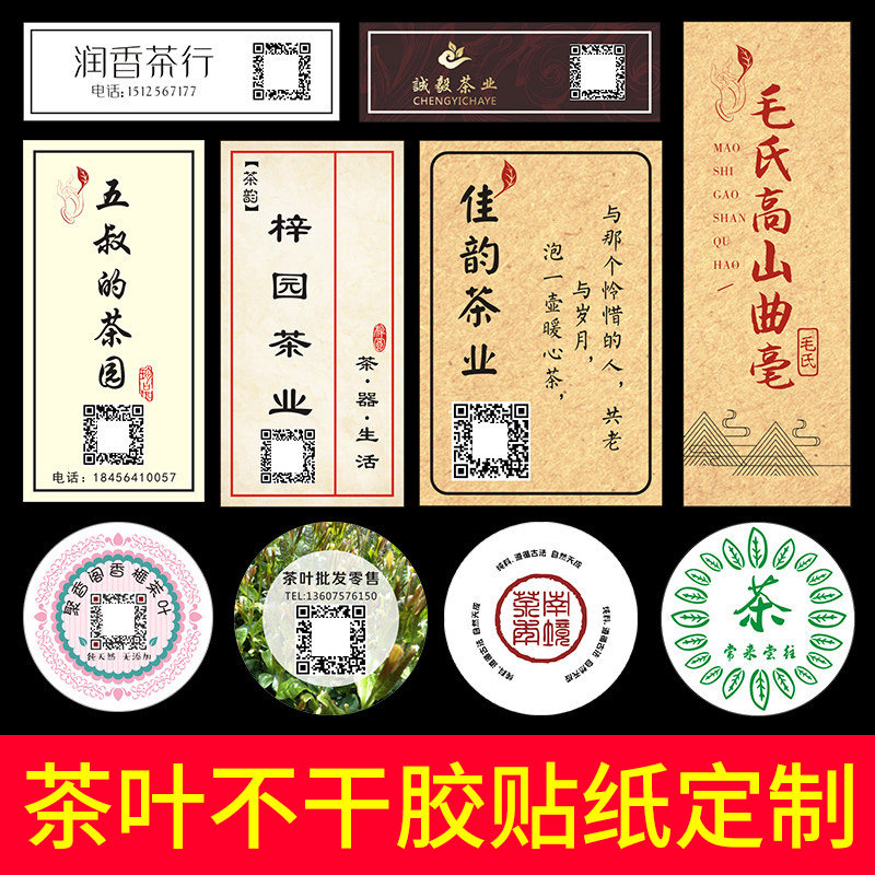 Tea shop label custom kraft paper self-adhesive QR code logo sticker made tea box packaging seal sticker