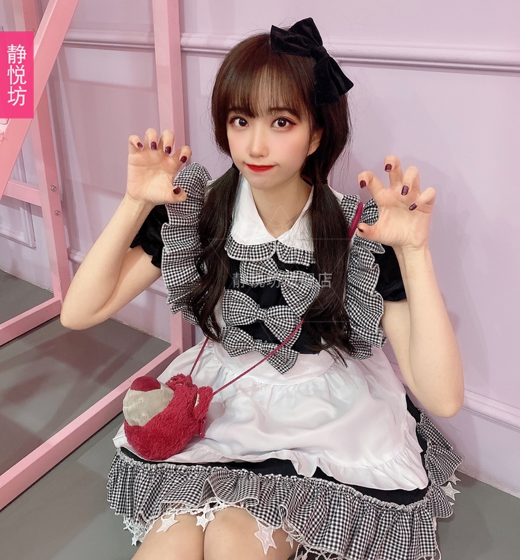 Black White Adorable Maid Dress COSPLAY Dress Lady Gags Maid Uniform Seductive Cafeterie Cat Costume