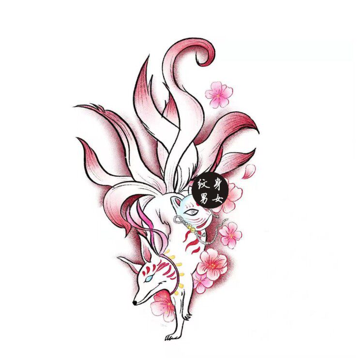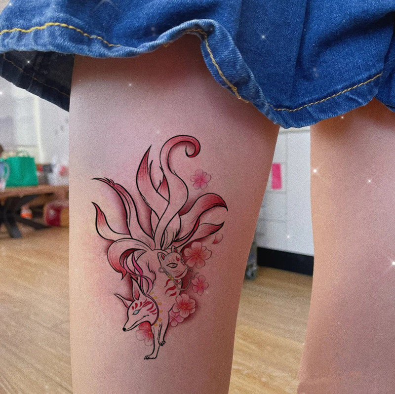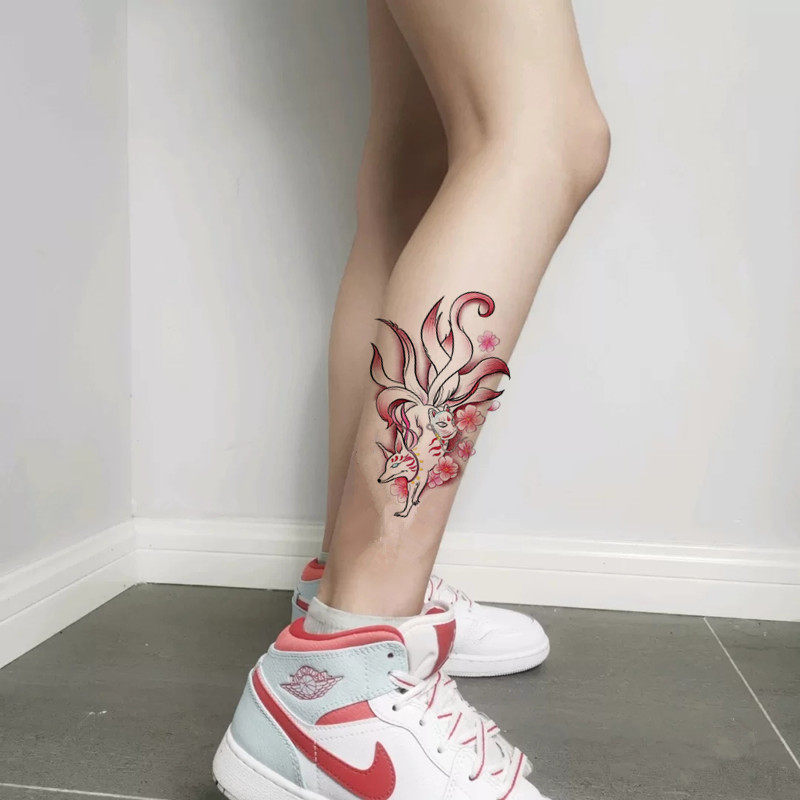 Fox long-lasting tattoo stickers Nine-tailed fox male tattoo stickers waterproof female flower arm