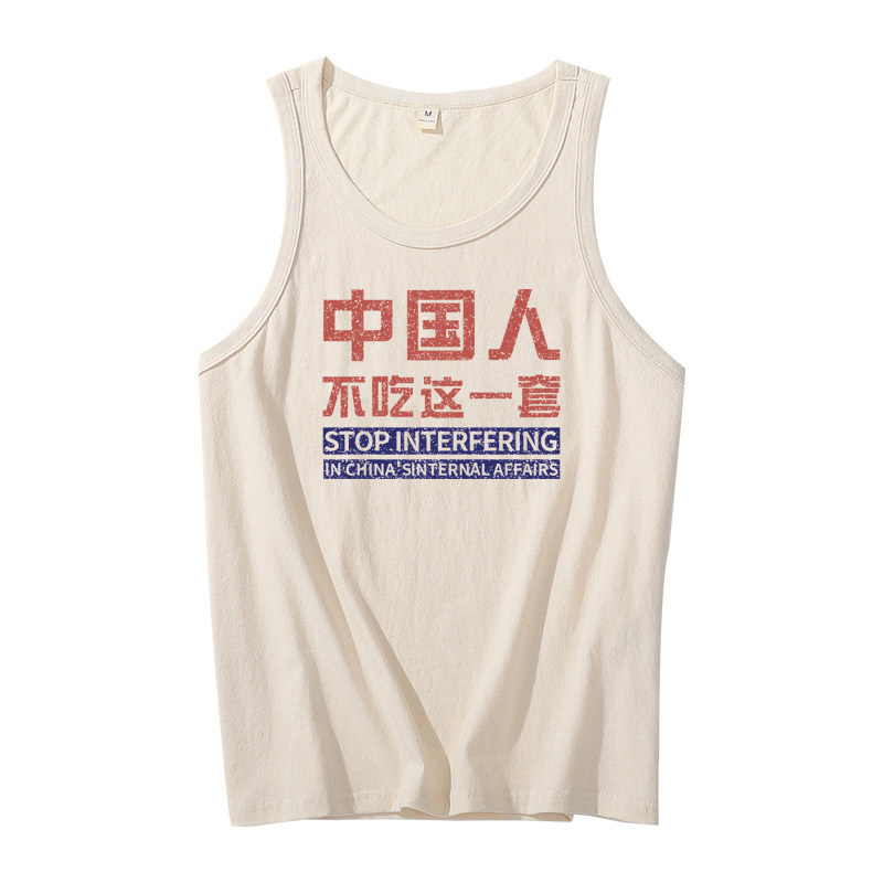 Chinese don't eat this T-shirt vest men's summer clothes national tide retro printed embryocotton sweat vest men and women with no sleeves