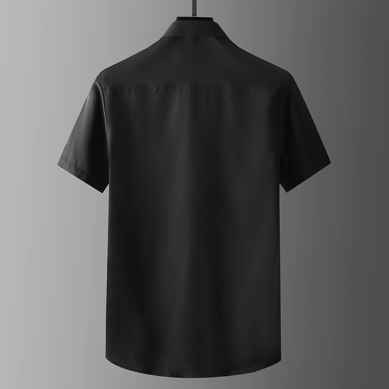 Light luxury quality summer thin silk smooth iron-free anti-wrinkle white shirt men's short-sleeved slim handsome embroidered shirt tide
