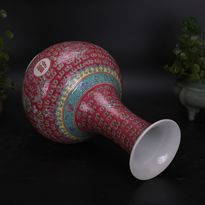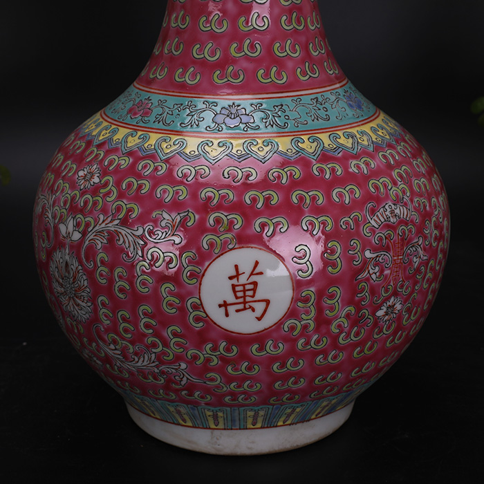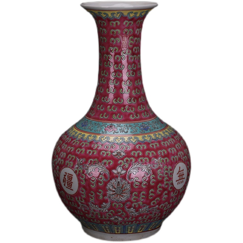 Special Price Cultural Revolution Factory Goods Red Ground Powder pink Wanshou No Xinjiang Wine Red Porcelain Handmade Ancient Play Antique Retro Collection