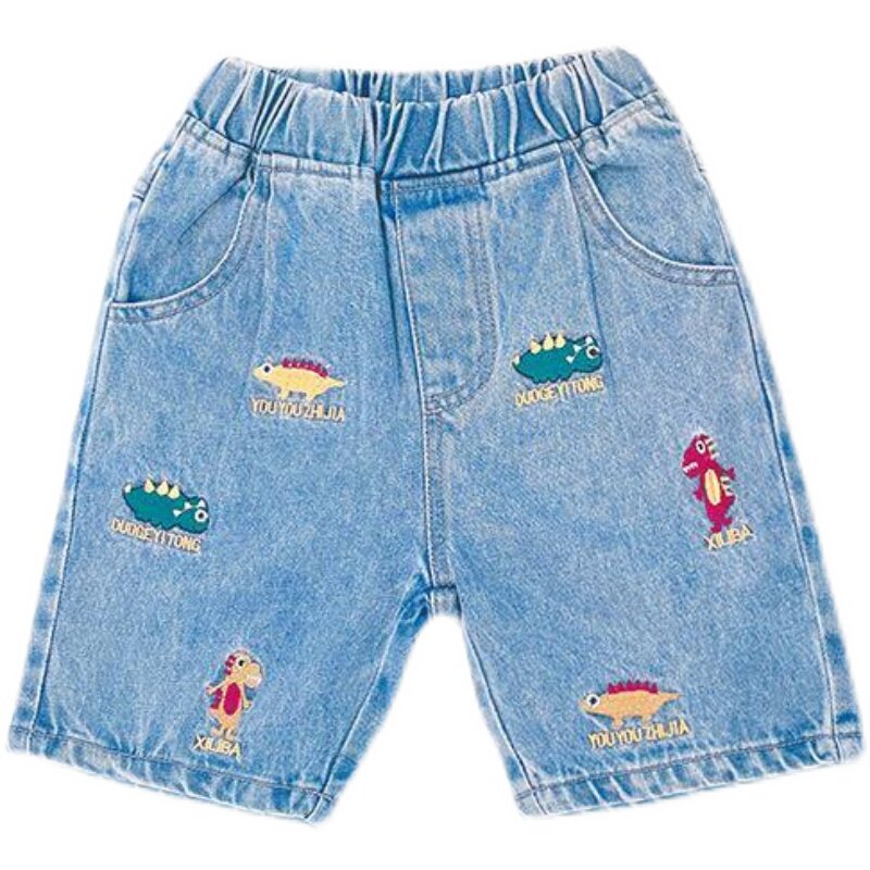 Boys' jeans summer 2022 Korean version of children's shorts embroidered casual pants middle and small children's Korean version of five-point pants tide