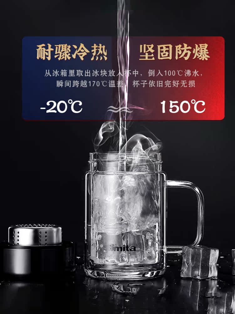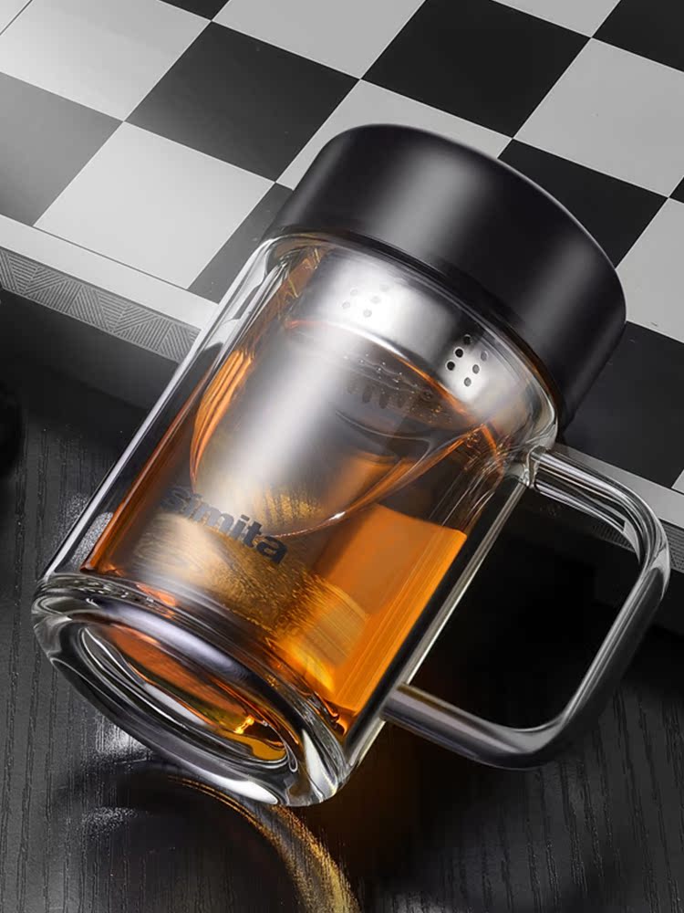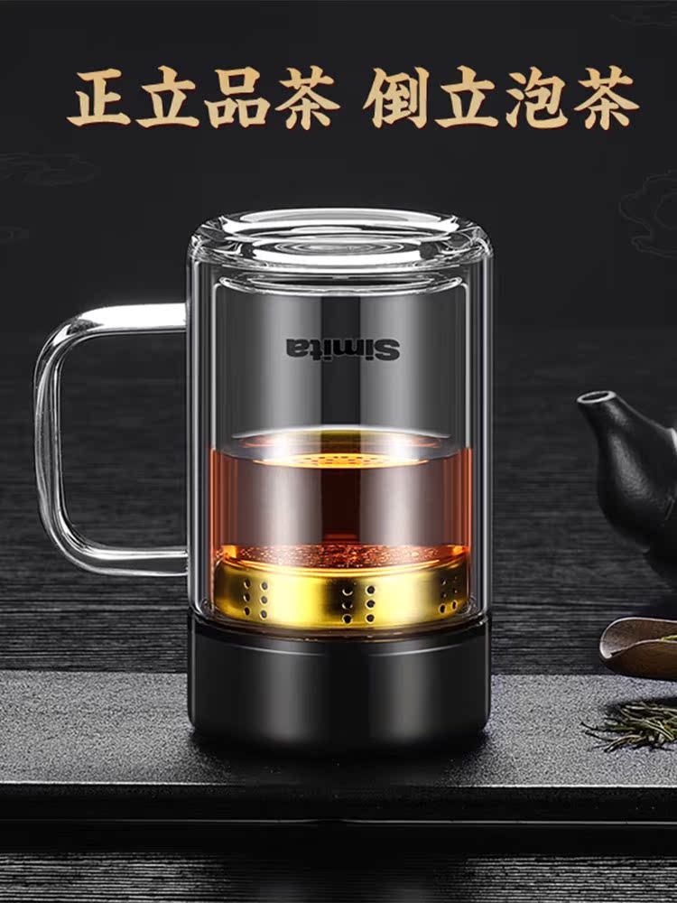 Simita tea water separation tea cup double-layer office glass with handle cover filter male high-end water cup