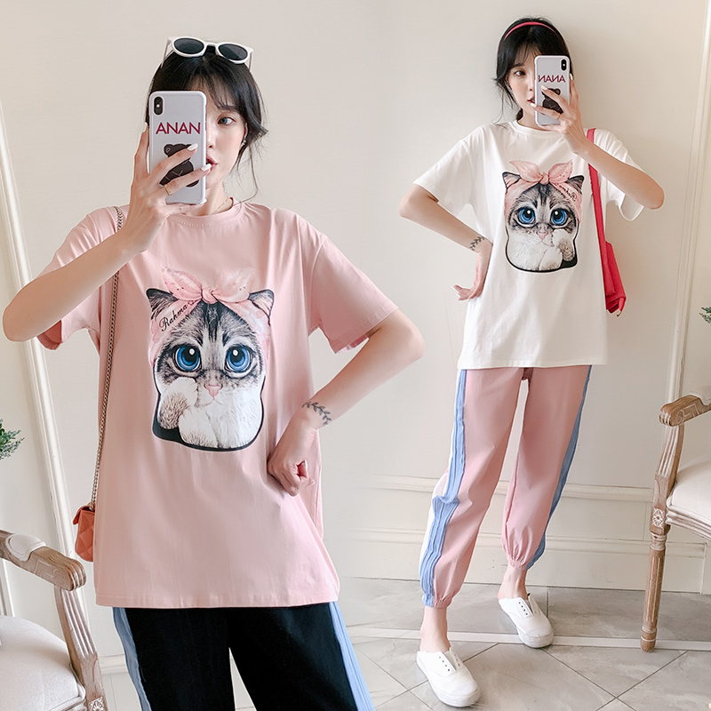 Pregnant woman T-shirt short sleeve loose blouses T-shirt Summer large size for summer and half sleeves Short cover Suit Summer Fashion style