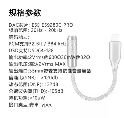 ess es9280c pro chip type-c adapter dac phone tpc decoder cable usb ear release 3 5 flat head hifi Meizu headset pro three