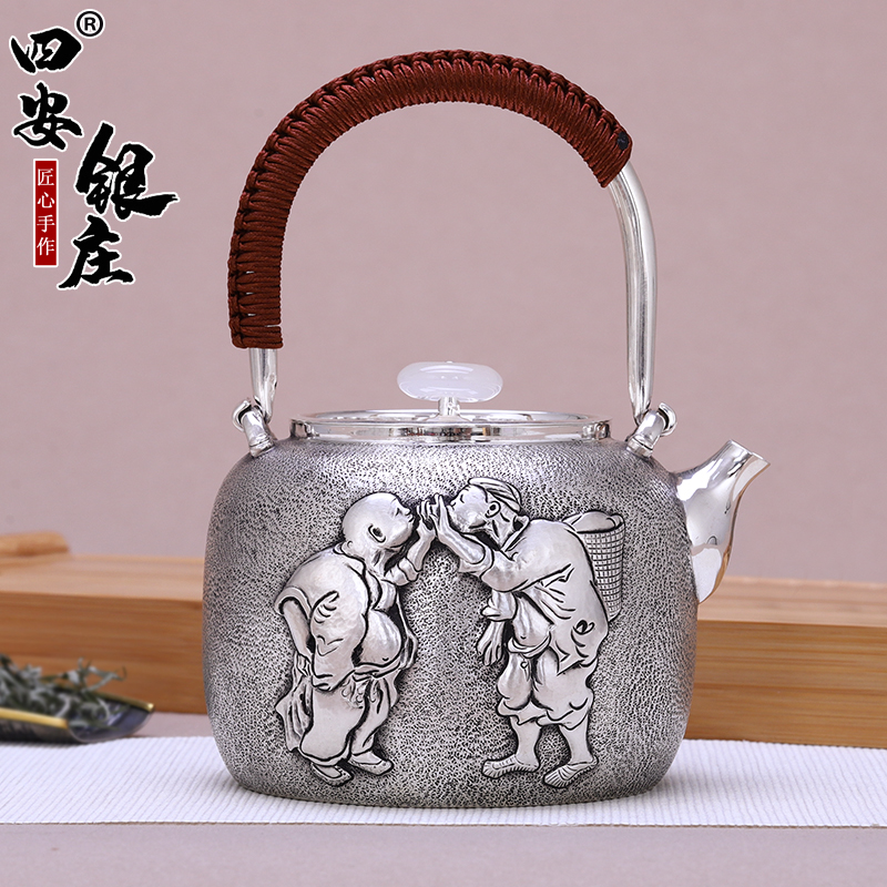 Anecdote silver pot sterling silver 999 kettle pure handmade a silver teapot Japanese-style kung fu tea set Si'an Yinzhuang