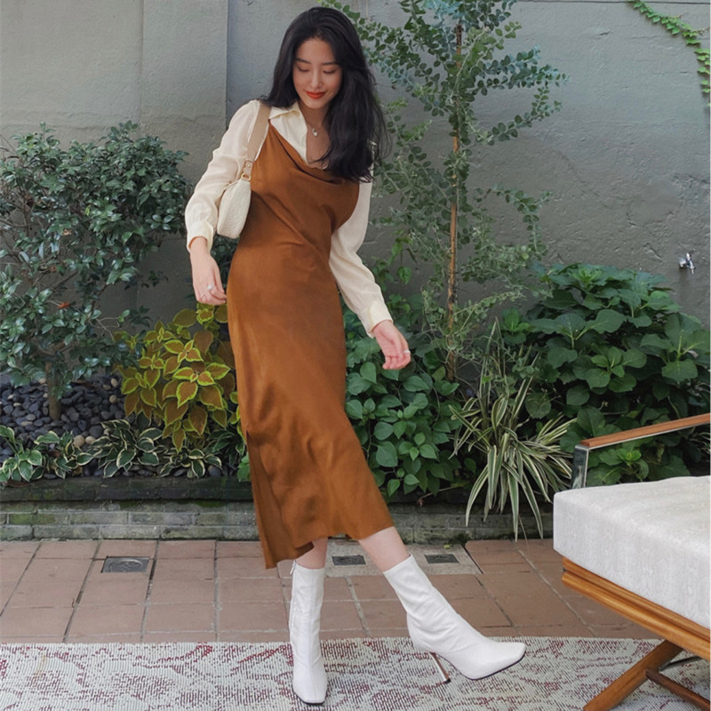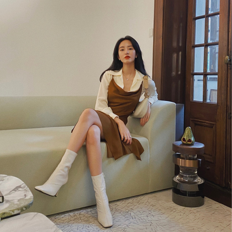 French MAJE Yang mining the same style of retro style pendant with skirt-suit shirt skirt laminated with two sets of women