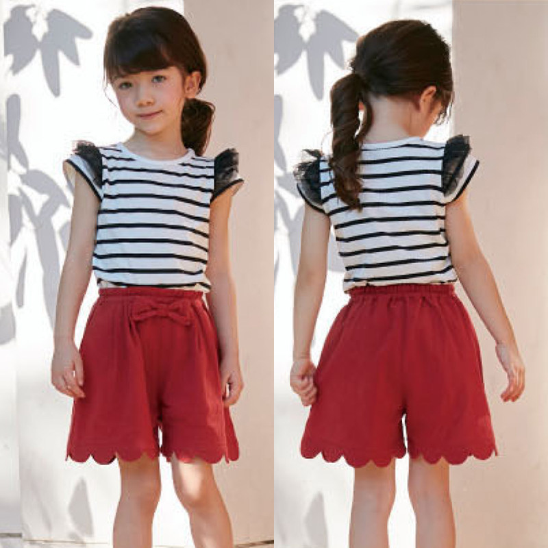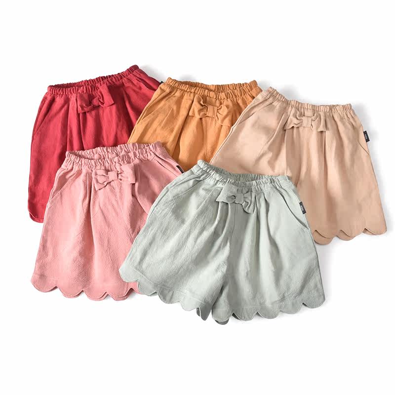 Summer girl pure cotton shorts baby polo lace half pants bow tie wavy side pants Japan one thousand anecdotes