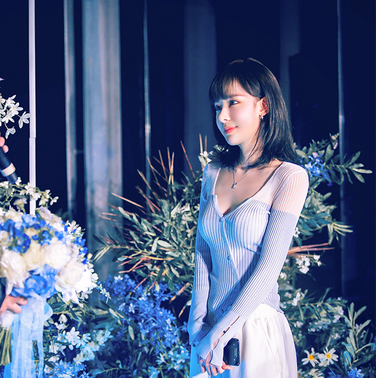 In spring and autumn 2021 new Ice Filament V - collar knitted shirt thin sleeves to shape the bottom of the Korean Edition