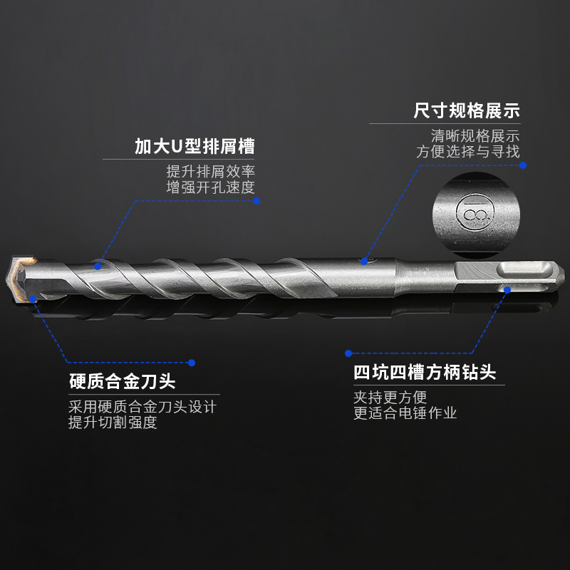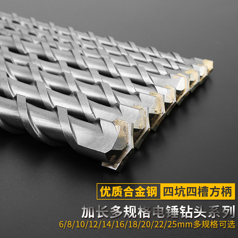 Dongcheng square handle 4-pit original alloy drill bit electric hammer drill bit impact drill through wall drilling concrete Heavy electric hammer drill