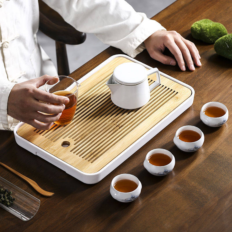 Japanese-style simple melamine bamboo small tea tray household water storage square tray Kung Fu tea set small tea table dry tea tray