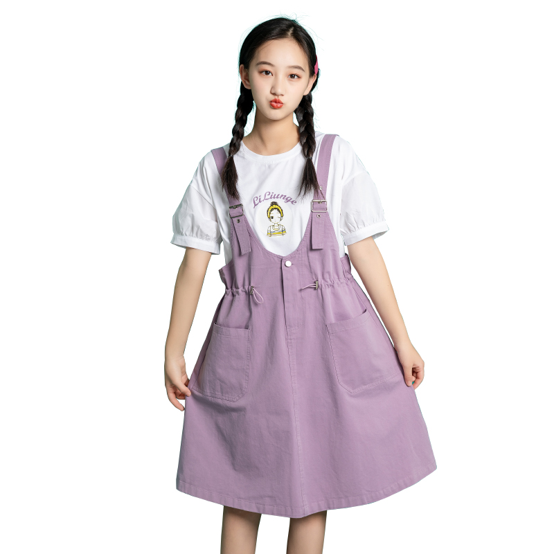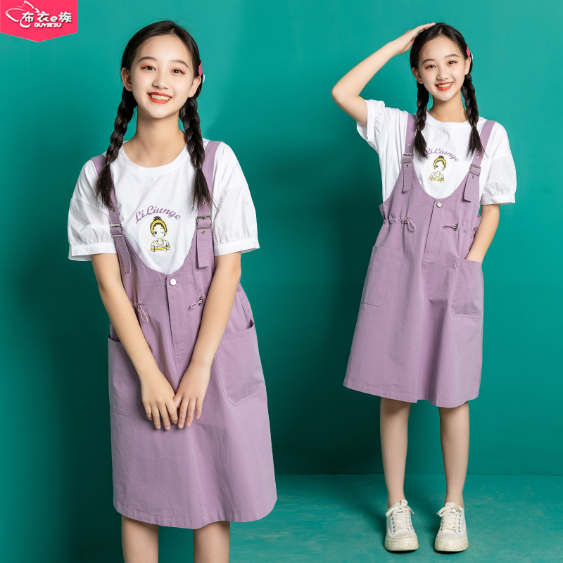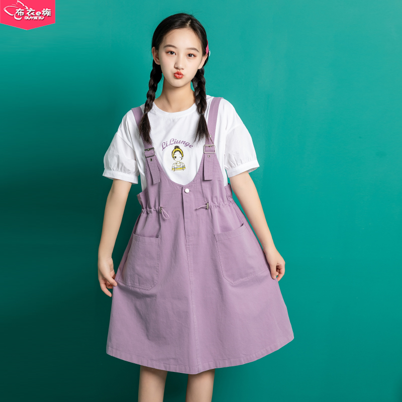 Girls dress summer suit 2021 new foreign school summer 12 big virgin dress girl baby bag skirt 15 years old