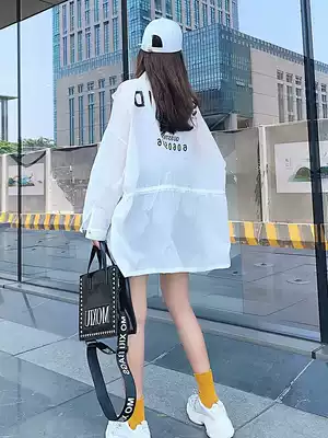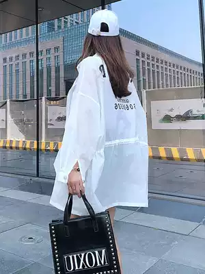 Tide brand sunscreen clothes female 2021 summer new Korean version thin ins medium and long version loose long sleeve letter sunscreen clothing