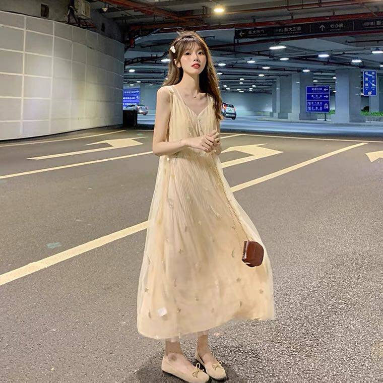 sandro tonali French floral suspenders chiffon dress new mesh sweet super fairy temperament long skirt