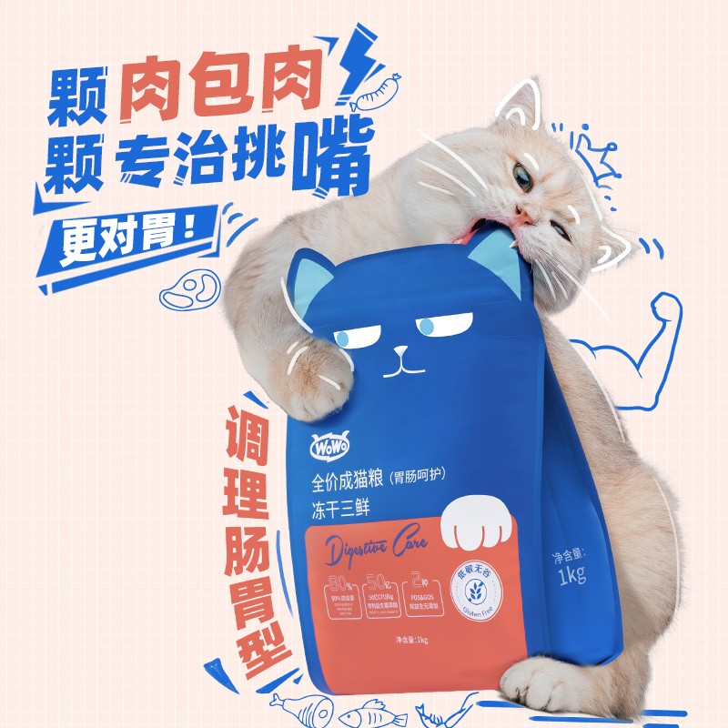 WoWo ooh ooh full price for cat food freeze-dried for three fresh 1kg * 5 bags freeze-dried chicken cat staple food for cat special 10 catties