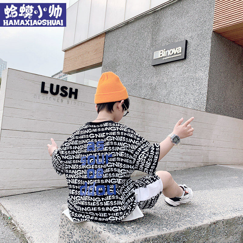 Boy Summer Suit 2022 New Tide Boy Dress Boy Foreign Palate Boy Net Red Handsome Boy Two Sets