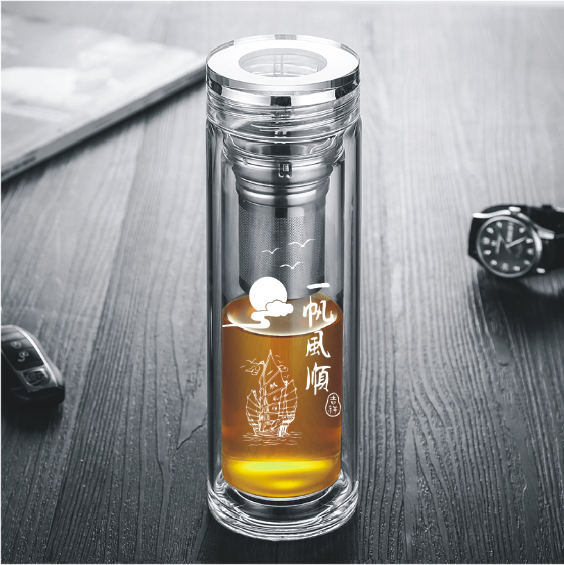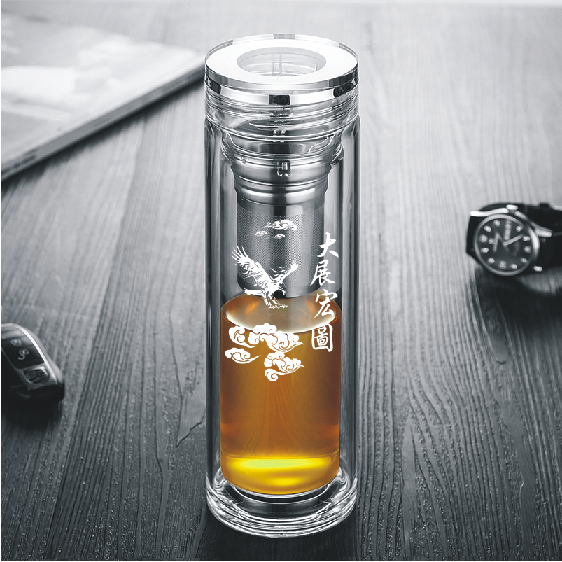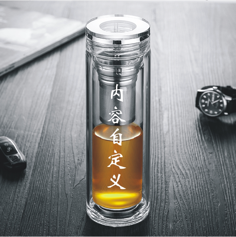 High-grade business transparent double-layer glass cup tea water separation tea cup men's and women's custom logo lettering cup