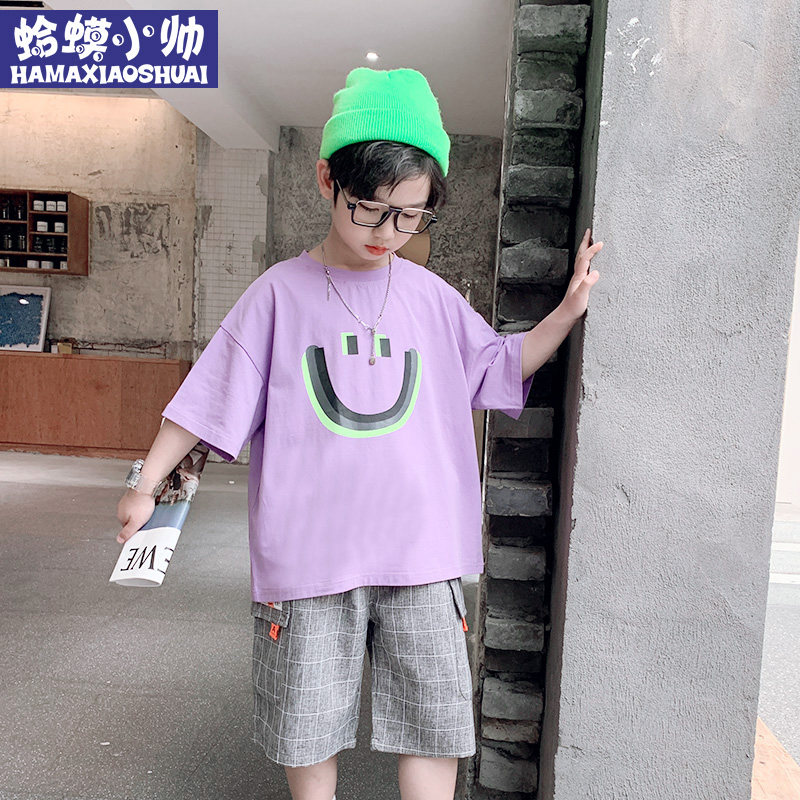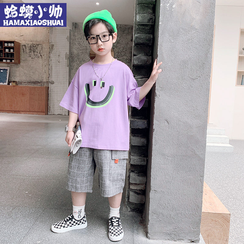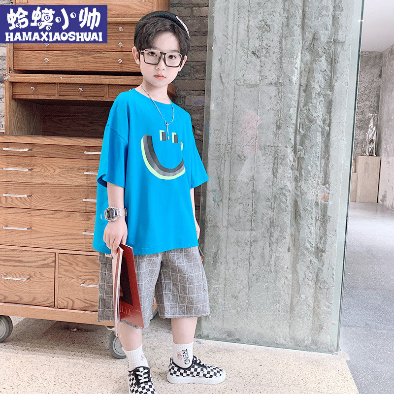 Boy short sleeve suit Summer 2022 New trendy CUHK Boy Tide Card Boy Clothing Boy Two Sets of Summer Tide