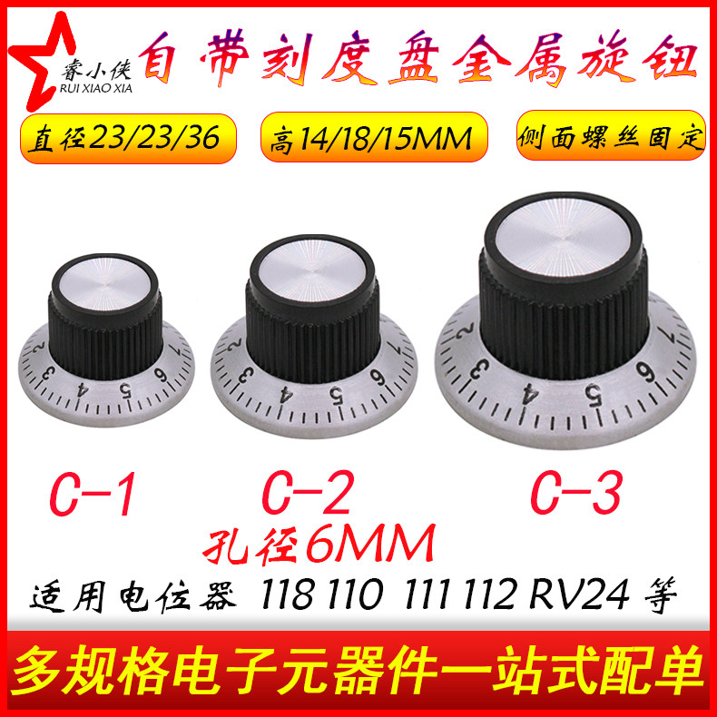 C1 2 3 C-1 2 3 3 with a Scale Disc Potentiometer Knob Axis Digital Metal Knob Hat