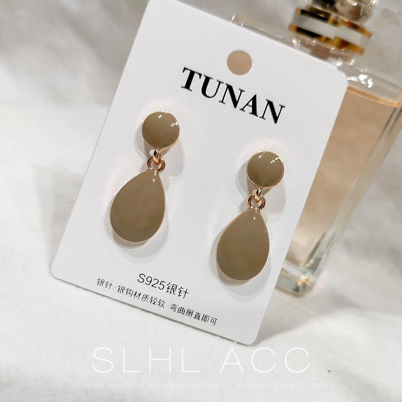 Court retro Morandi earrings year new trendy Korean temperament net red Hong Kong style ear acupuncture female long version water drop earrings