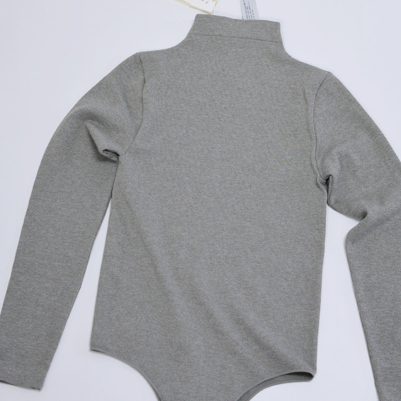 o Home Good goods Long sleeves Half high collar Bottom Jersey Yoga Gym Fitness Clothes Sports T Dance suit Pure color grey Spring Girl