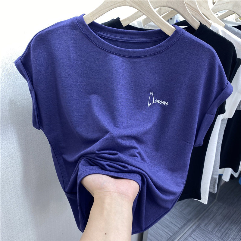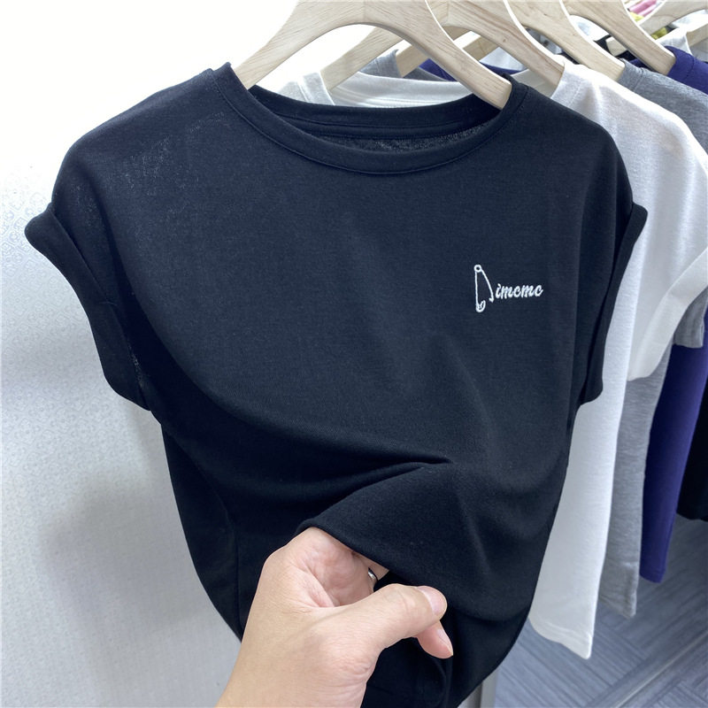Euroletter Embroidery Thin style breathable half-sleeve T-shirt woman 2022 summer fit new loose 100 Lapped Foreign Blouse Tide