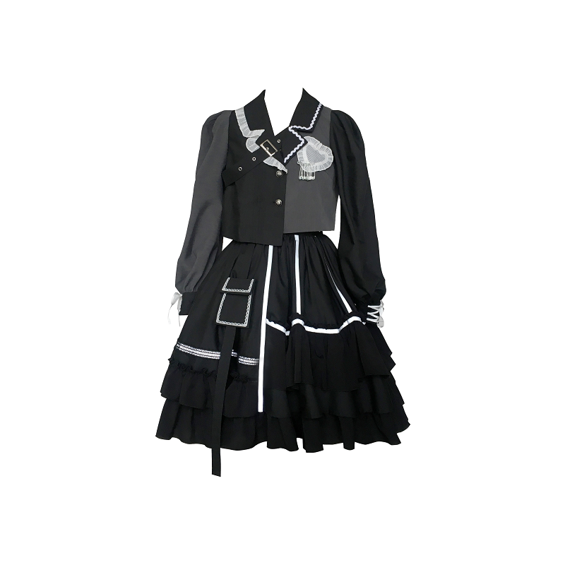 (BAD J-Night Sleep) Withpuji Original Design Dark Black Wind Glistening Bar Sk Suit Lo Skirt Spring Summer