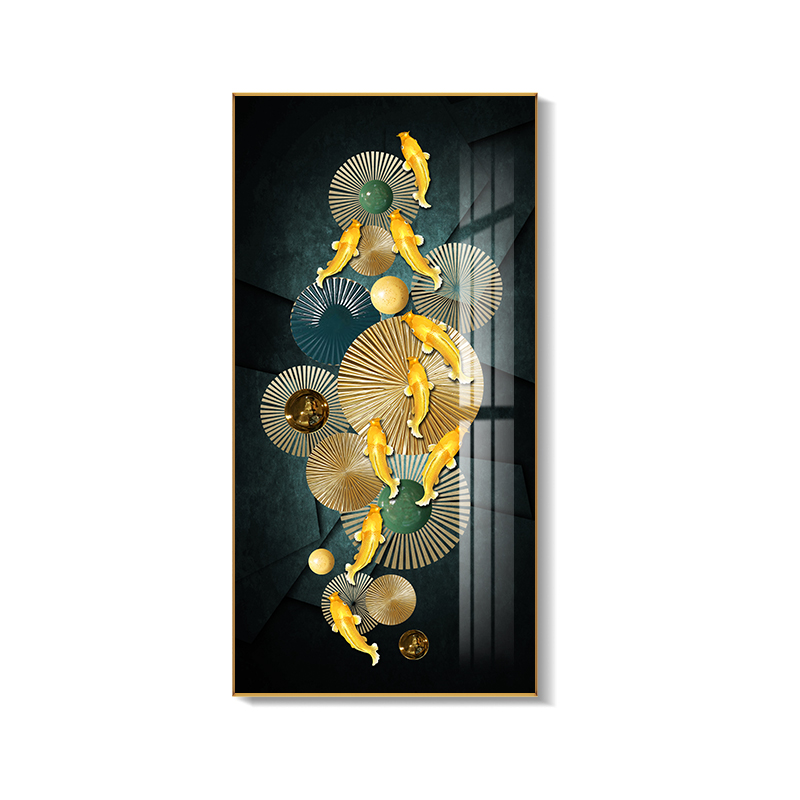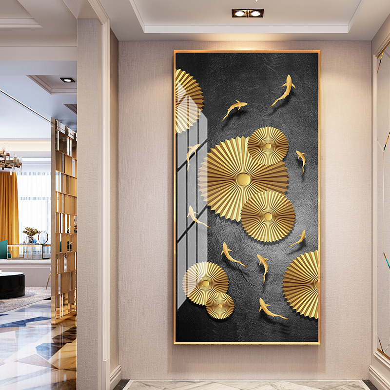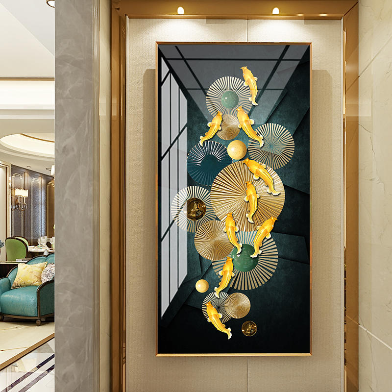 Nordic Xuanguan Decorative Painting Aisle Entrance vertical version light extravagant high-end frescoed modern minimalist corridor Nine fish picture hanging painting