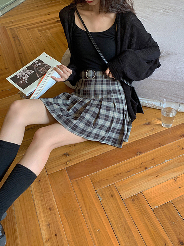 2021 Spring net red short dress a character grid half body dress with high waist and large size suitable for fat people's pleasantism
