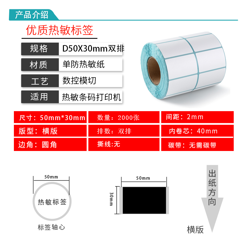 50X30 Double row heat sensitive adhesive barcode print label paper 50 30 Logistics label sticker 50*30 two rows
