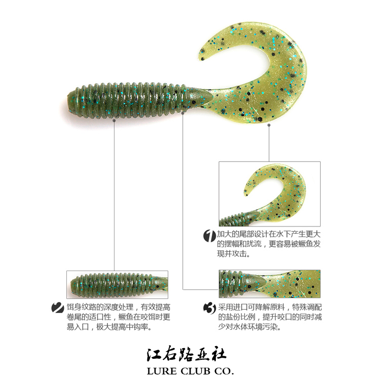 Beauty Summer EWE Explosive Fishing Roll Tail Plus Salt Lujah Texas Caro Lead Head Hook Soft Bait Mandarin Fish Bass Black Fish Soft Worm Bait