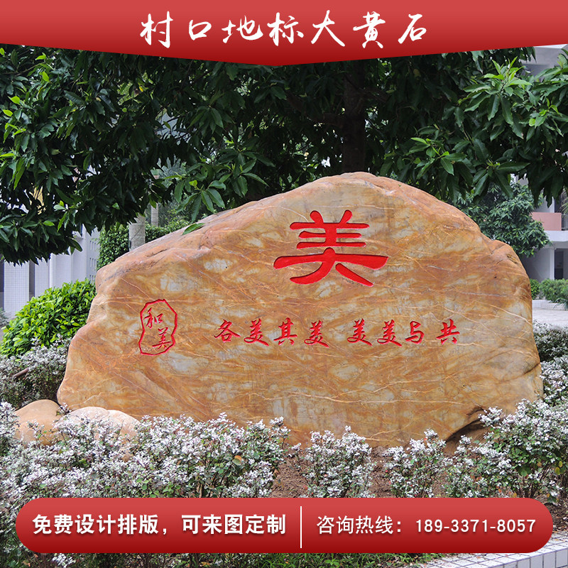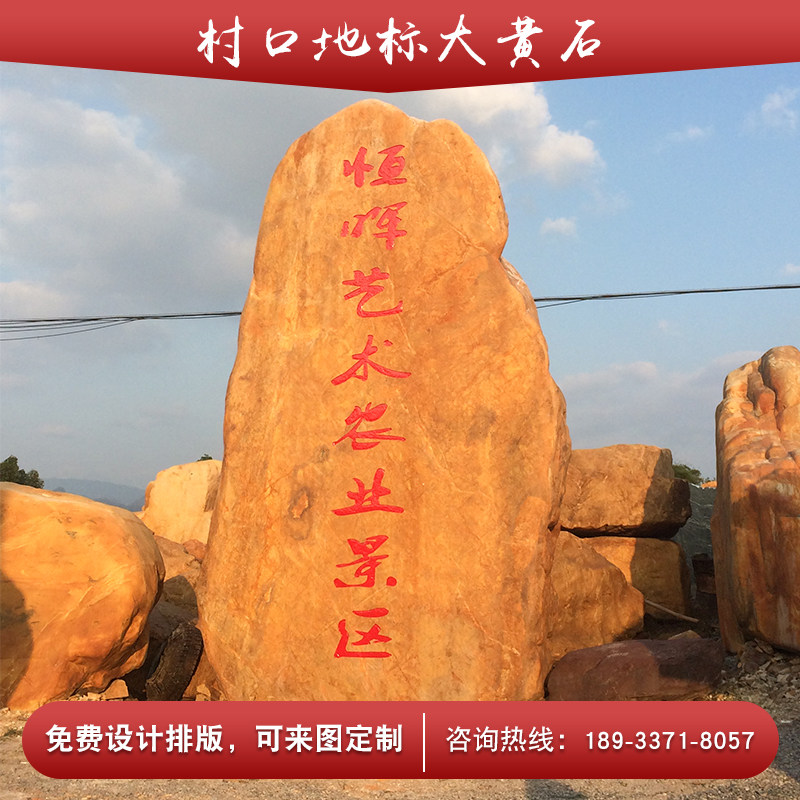 Large outdoor landscape stone natural yellow wax stone large signboard lettering custom highway intersection road sign stone