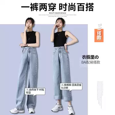 Wide leg jeans women's autumn 2021 new autumn and winter high waist hanging feeling thin loose Joker straight women's pants