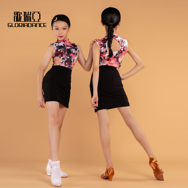 Gloria Latin dance clothes for girls and young children small high-neck sleeveless waist back hollow training clothes dress G3310