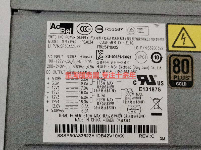 Brand new color Lenovo S30 Workstation power supply 610W FSA034 54Y8844 54Y8905