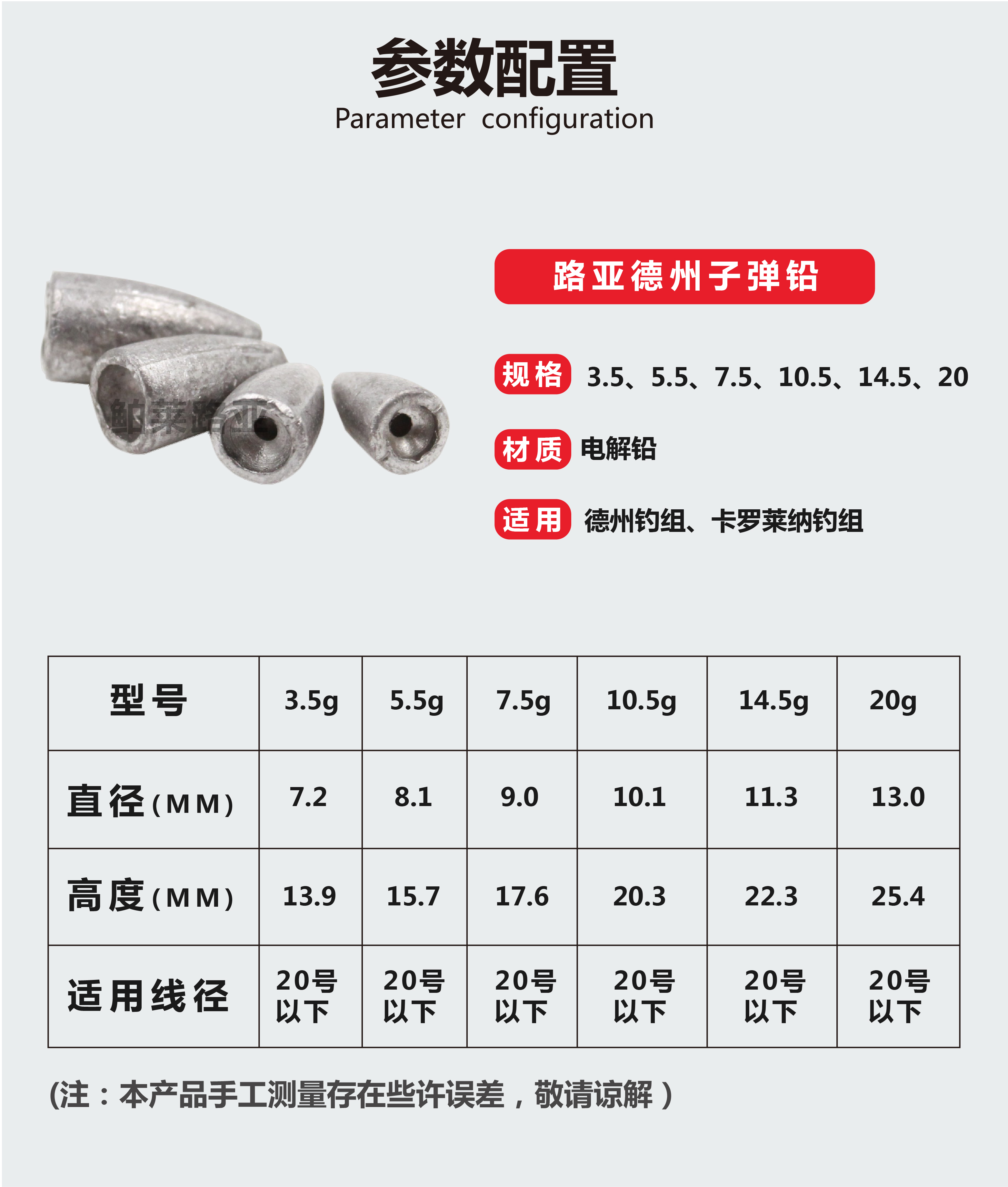 20 pieces of Texas Carolena Bullets Lead Mandarin Fish Bass jump bottomed far into sharp lead with lead