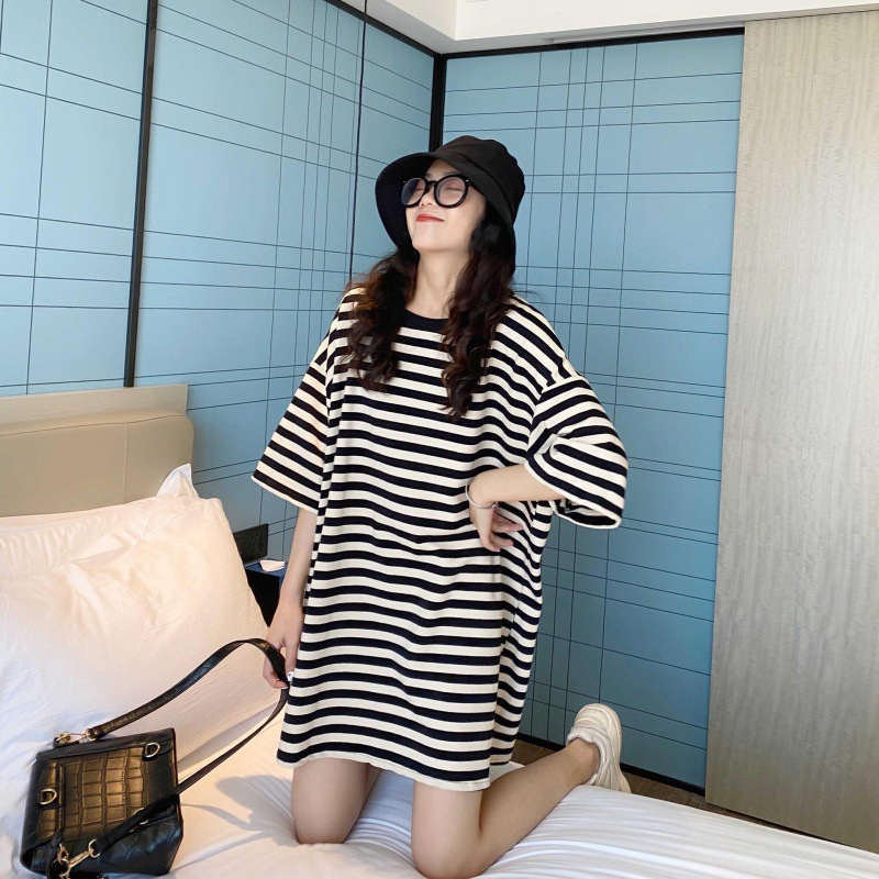 Pregnant woman striped short sleeve T - shirt pure cotton 2022 summer Internet red tide Han edition loose middle - long - plate tops lazy T - shirt