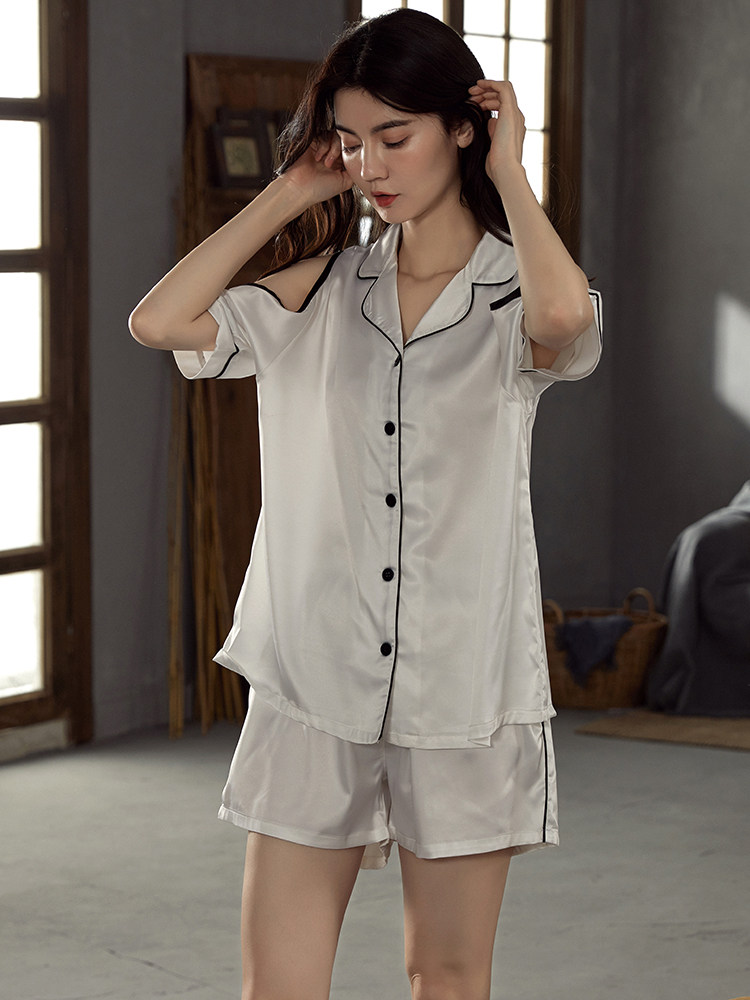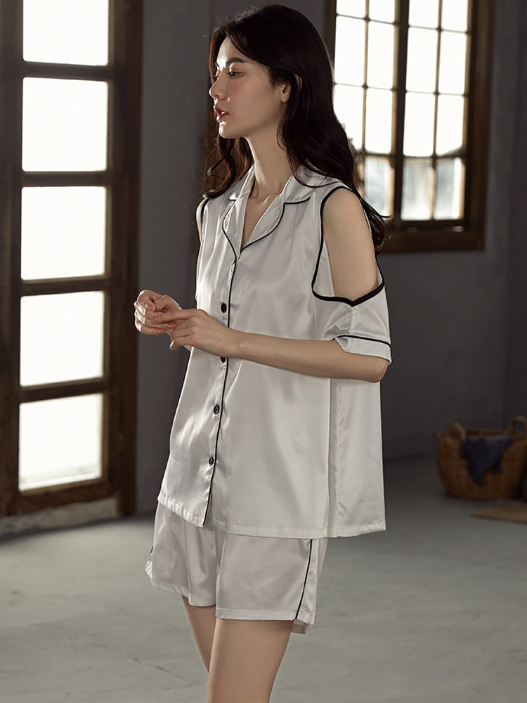 Advanced Senses Sleepwear Women's Summer Ice Silk Thin 2021 New web Red Burst Real Silk Lady's Home Suit Suit