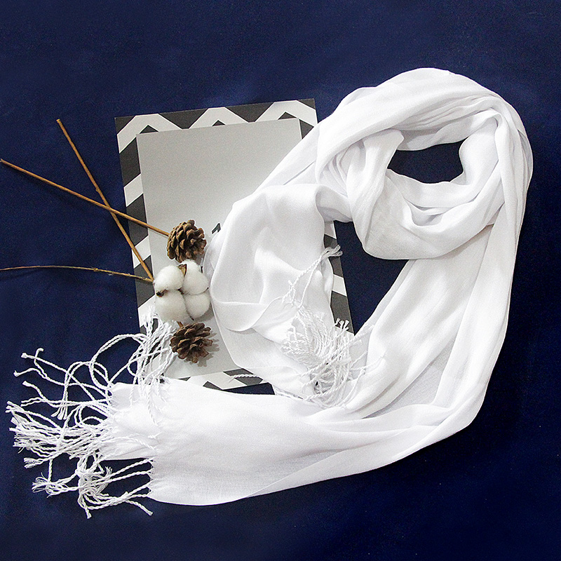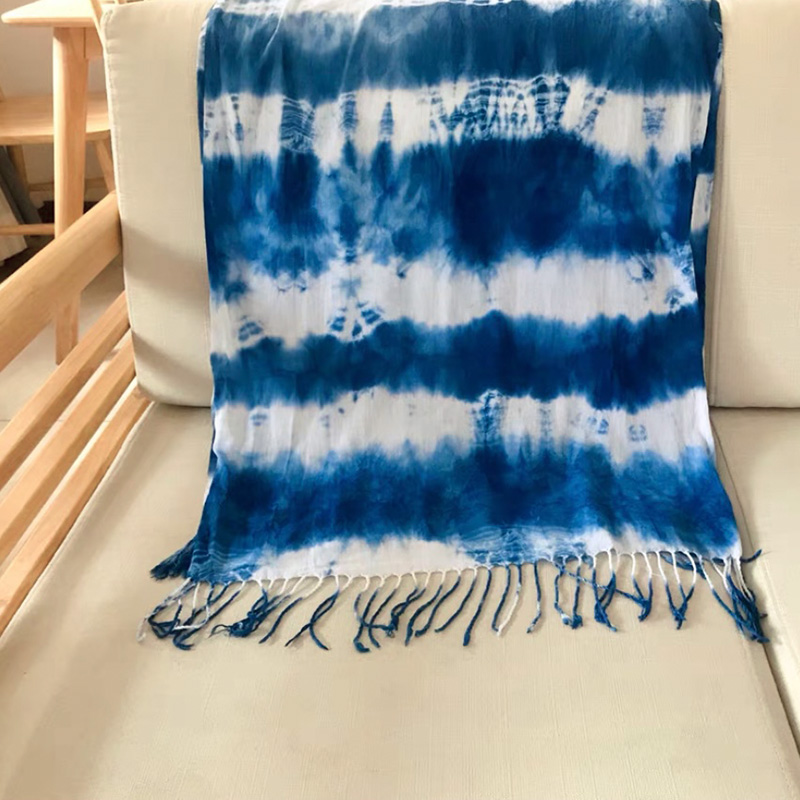Pure white scarf students hand blue dyed wax plants dyed diy silk scarf long shawl around the neck