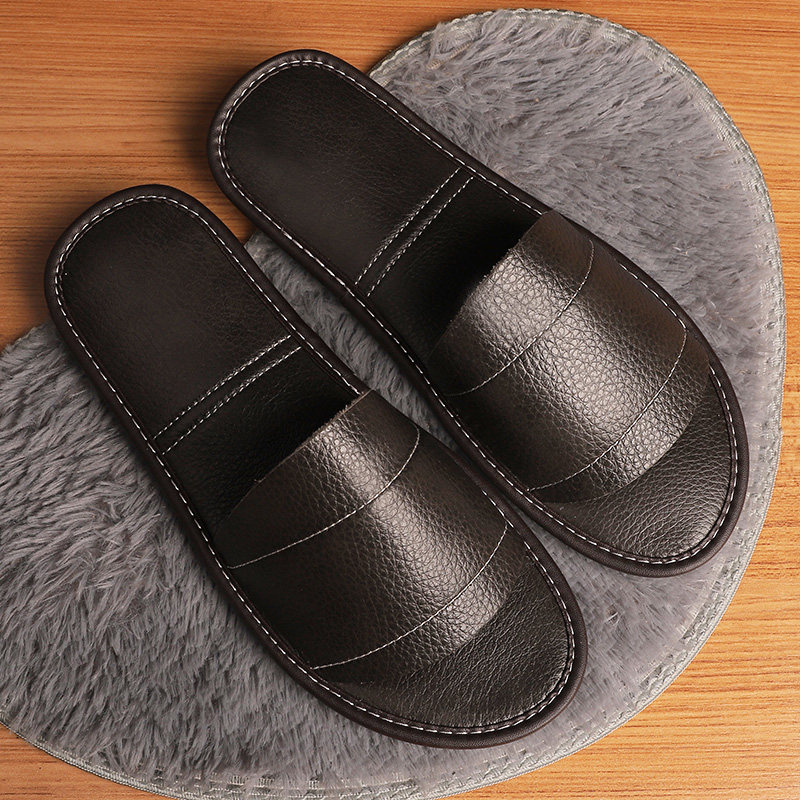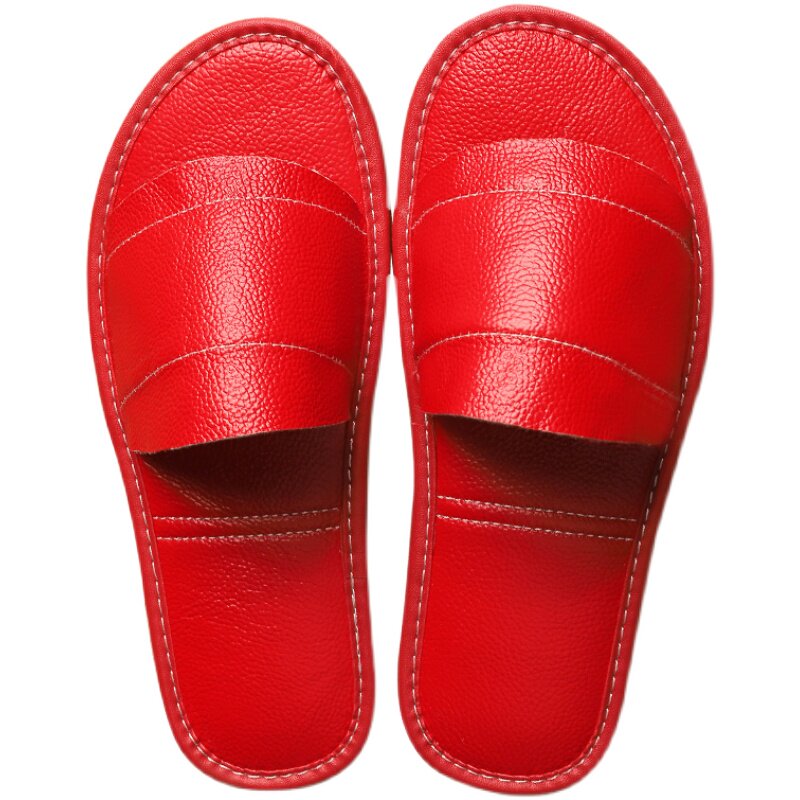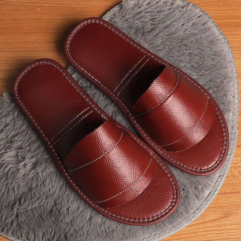 Leather home slippers women's summer home indoor non-slip cowhide on-line sandals and slippers not foot odor soft bottom household men
