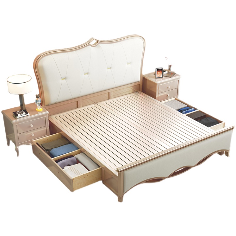 Simple European light luxury modern solid wood bed simple 1 8 meters master bedroom champagne gold double bed 1 5 drawer storage princess bed