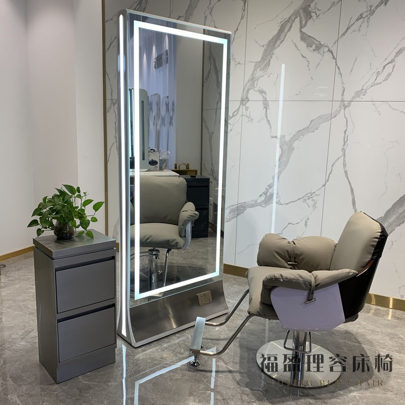 The new barbershop with lights mirror desk net red hair mirror hair salon special perm and cut hair stainless steel single-sided mirror