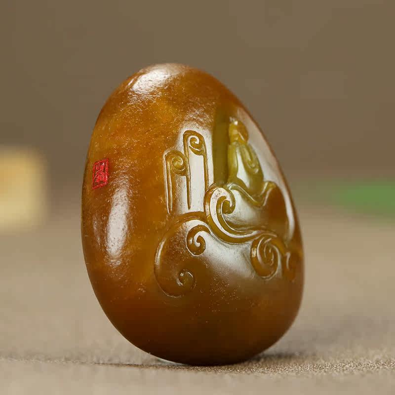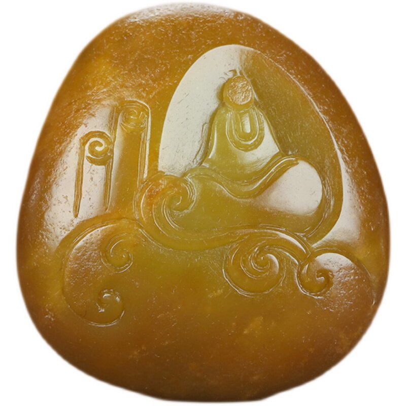Xinjiang and Tian Yuepiu Pendant Natural Seed Material Huangqin Duck Egg Green Pendant Suyu Master Jade Pendant 46 17g