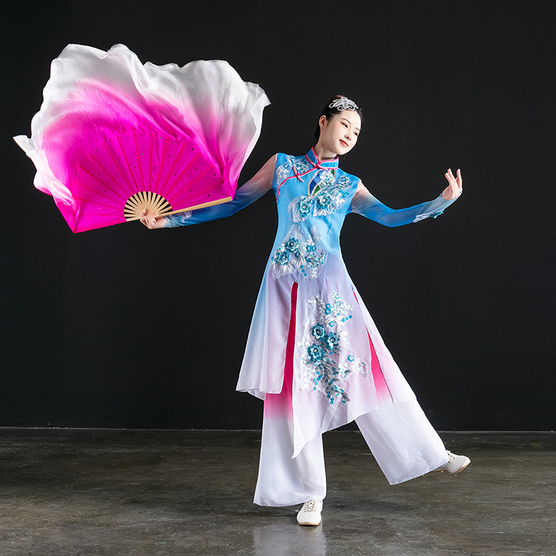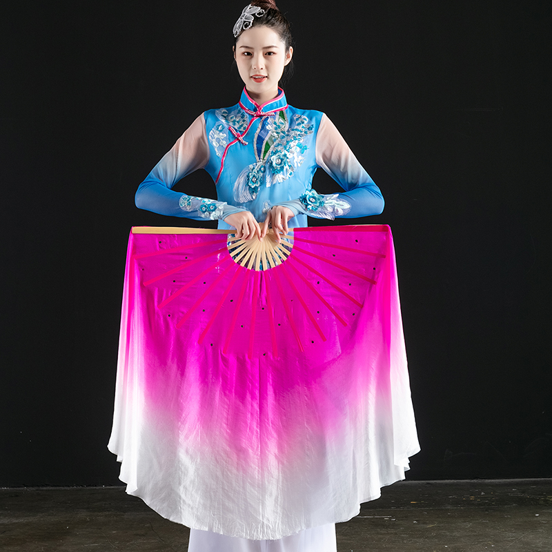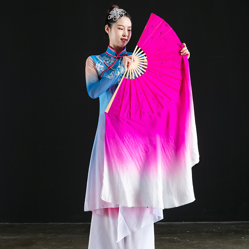 Dance fan extended adult silk double-sided Jiaozhou Yangko fan performance big gradient dance performance fan dance fan