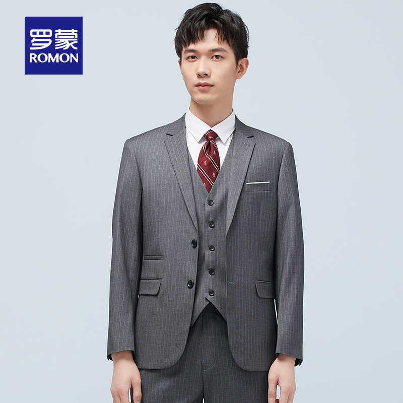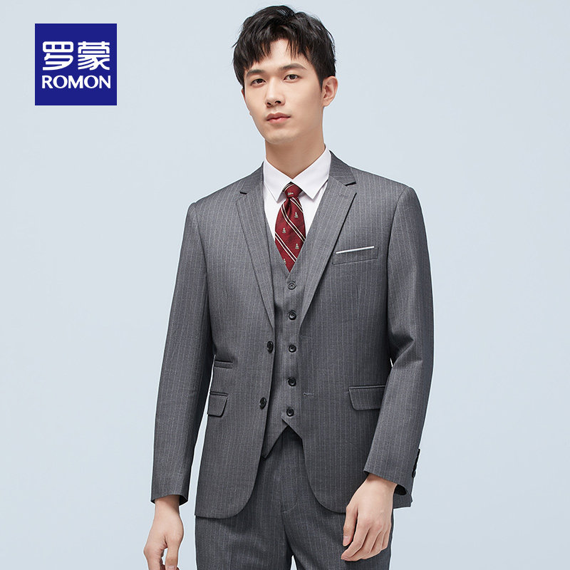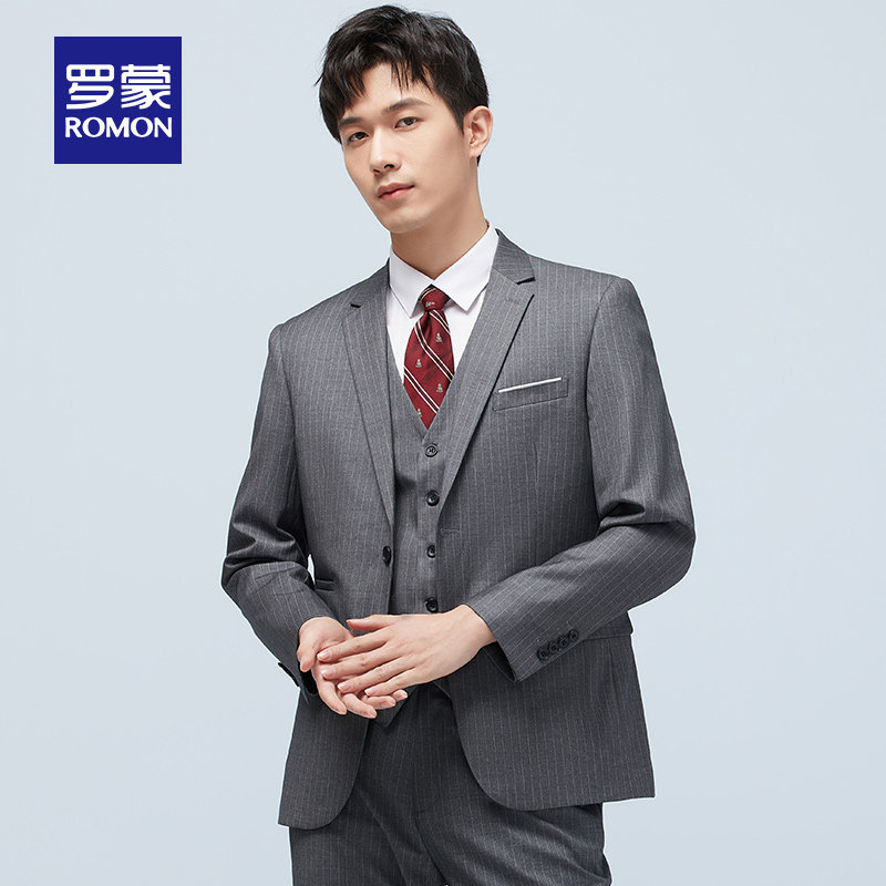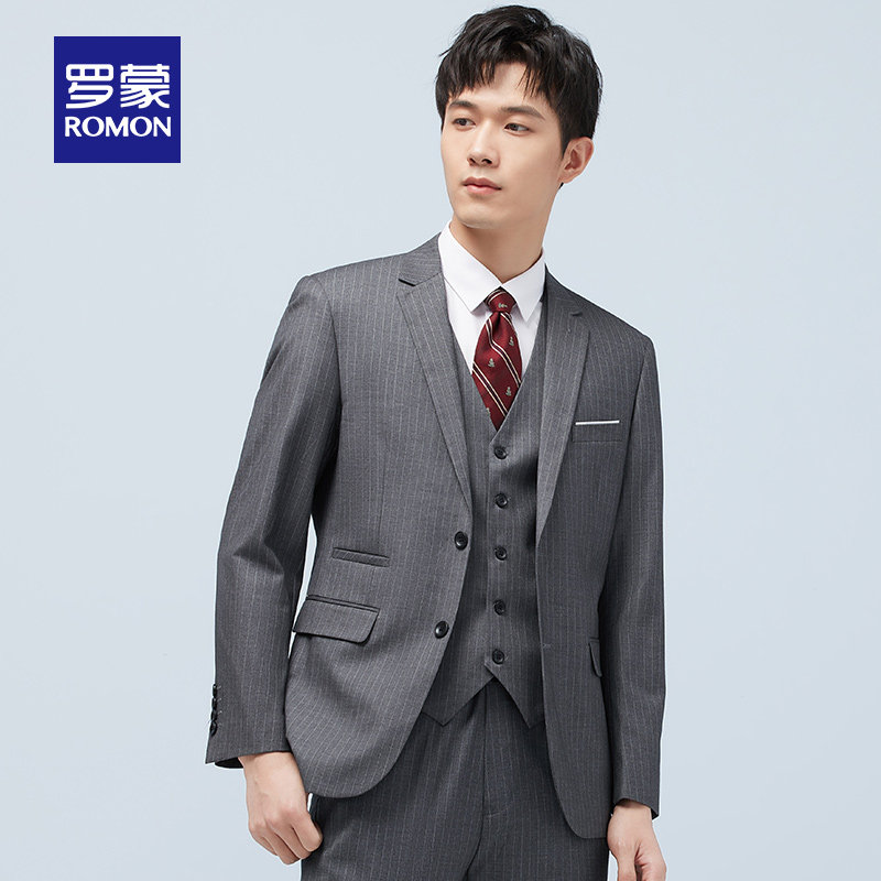 Romon men's striped suit waistcoat 3 piece spring 2021 new business casual professional suit suit for men