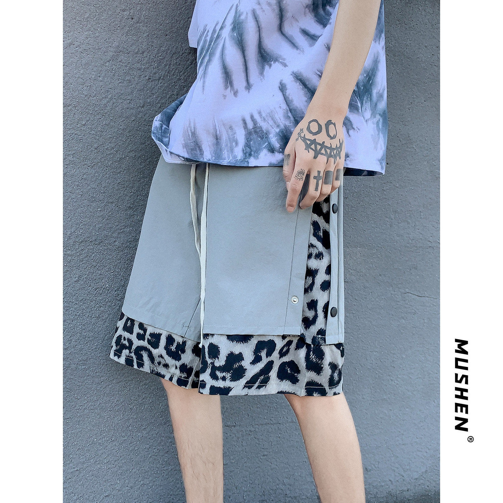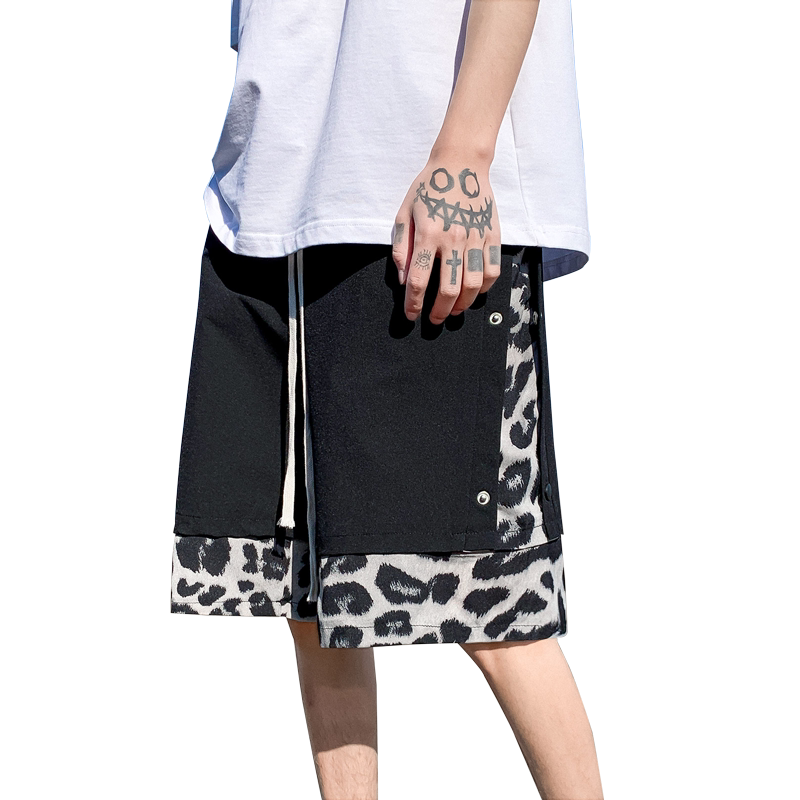 ins Port wind casual shorts boys trendy handsome breasted stitching BAO Wen summer new net red high street 5 points pants