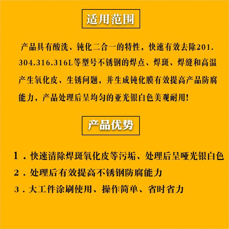 Pickling paste Stainless steel pickling passivation paste Weld passivation liquid Argon arc welding channel cleaning agent wash steel water to remove welding spots