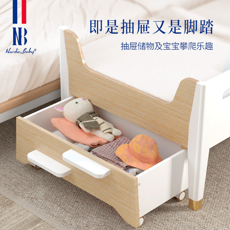 Nordicbaby Children's Bed Splicing Solid Wood Large Bed Baby Girl Princess Single Island Bed Crib Boy